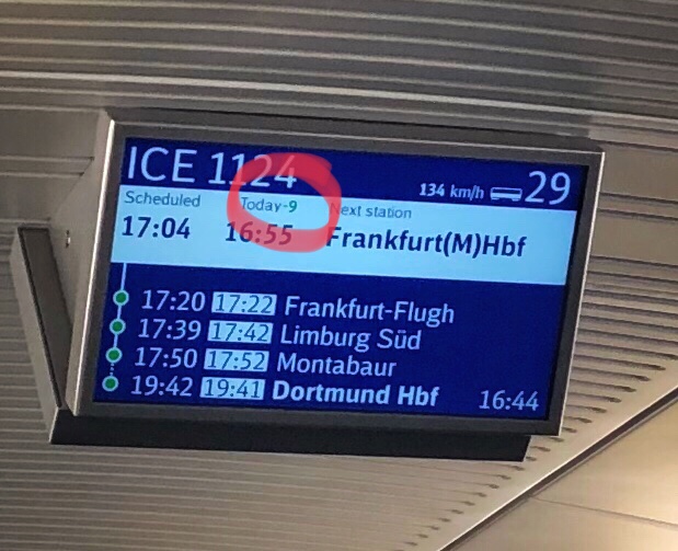 Ich fahre auch viel mit der Bahn. Allerdings habe ich gestern das allererste Mal erlebt, dass ein Zug neun Minuten zu früh ankommt. Mir fehlen die Worte…